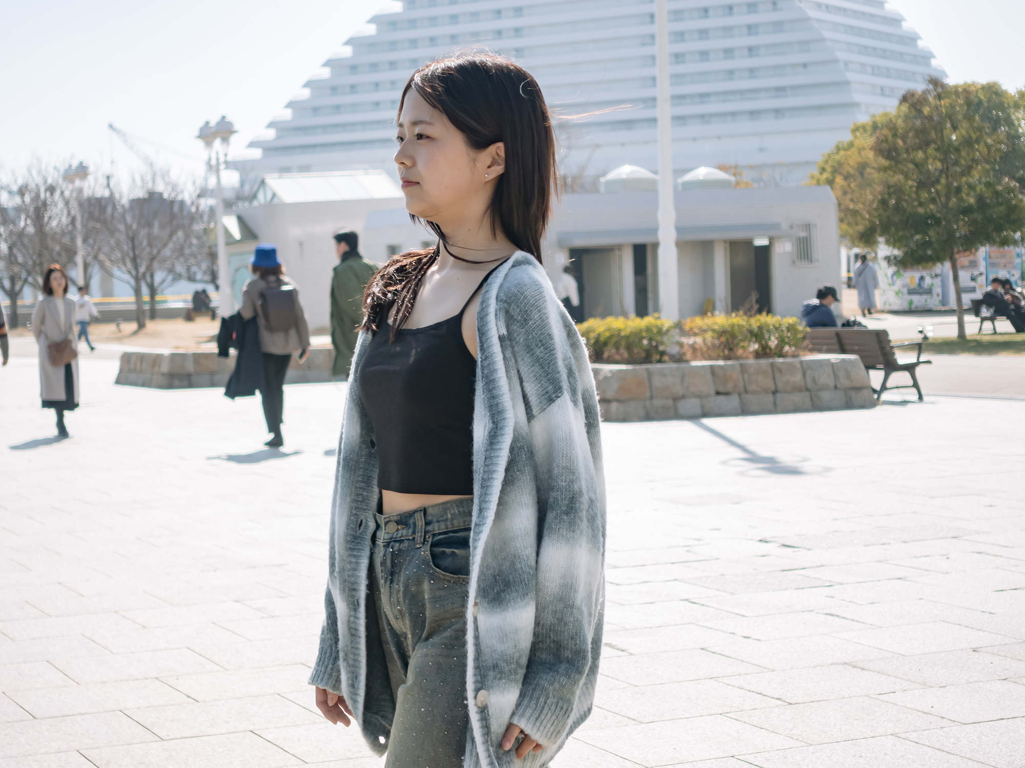 いかがでしょうか?神戸で撮る限り、背景をぼかしてごまかさないといけないような醜い景色もありませんし、趣味で撮る写真でしたら背景に人が写り込んでいても叱られることもありません。